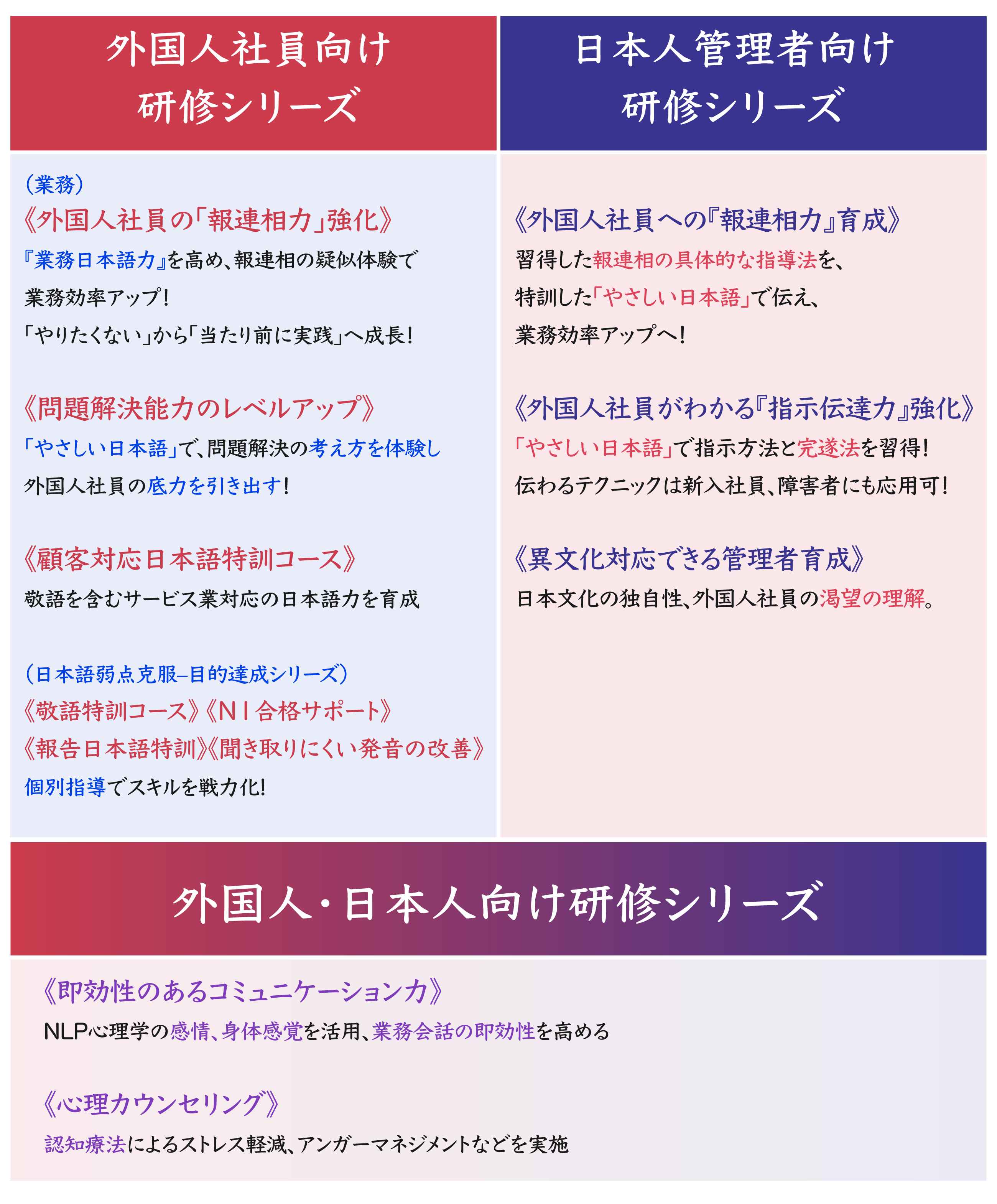 調査から、朝礼のフォローまで、研修効果が崩れず、マンネリにならない安定した社内育成のお手伝いをします。